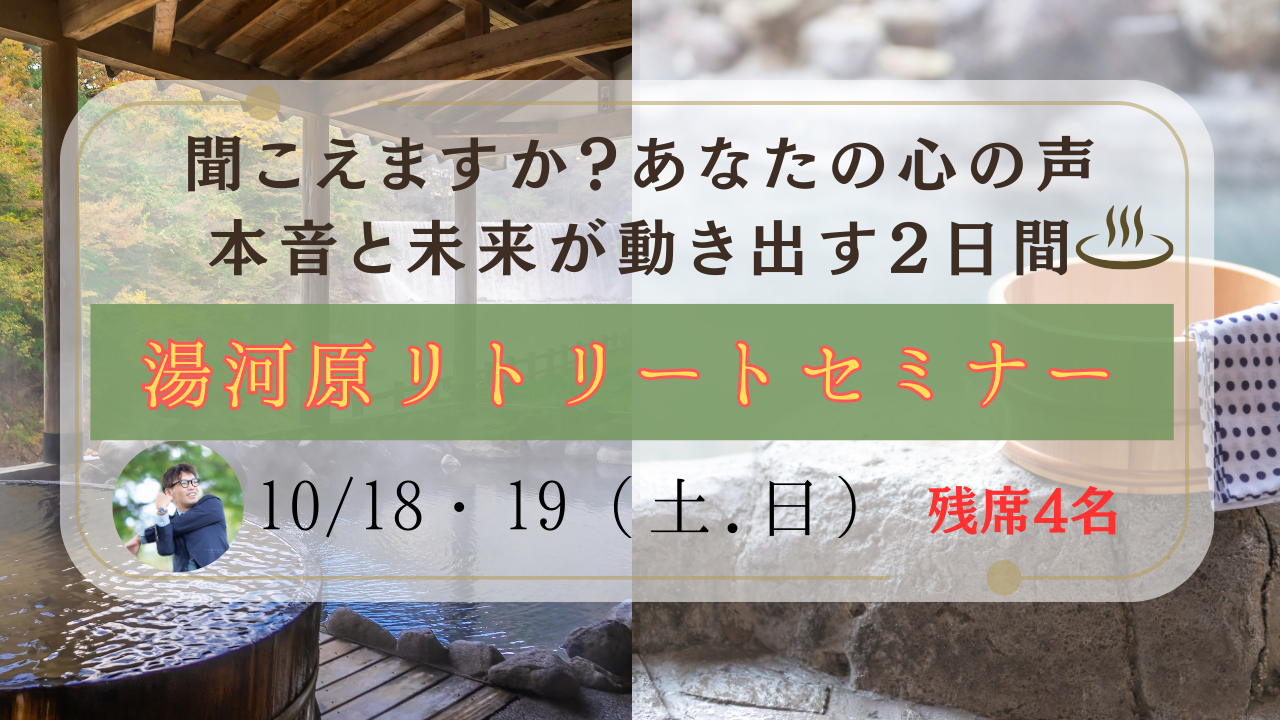 今日は皆さんに、10/18.10/19(土.日)に開催する、湯河原リトリートセミナーのご案内です。