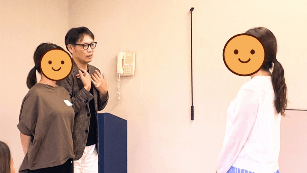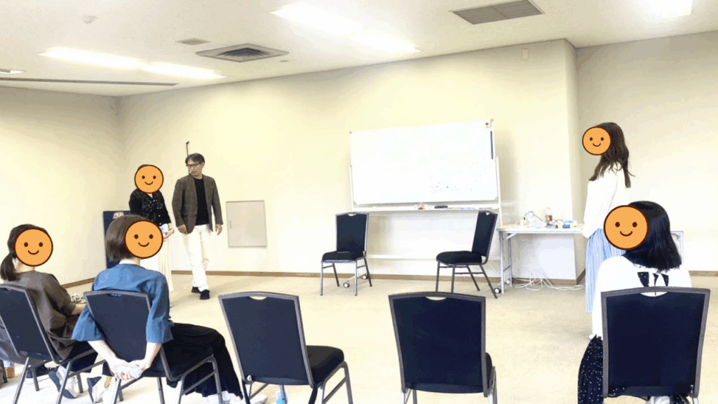 個人の抱えている問題をシェアしてもらい、その解決策をロールプレイの手法で、セッションを行います。