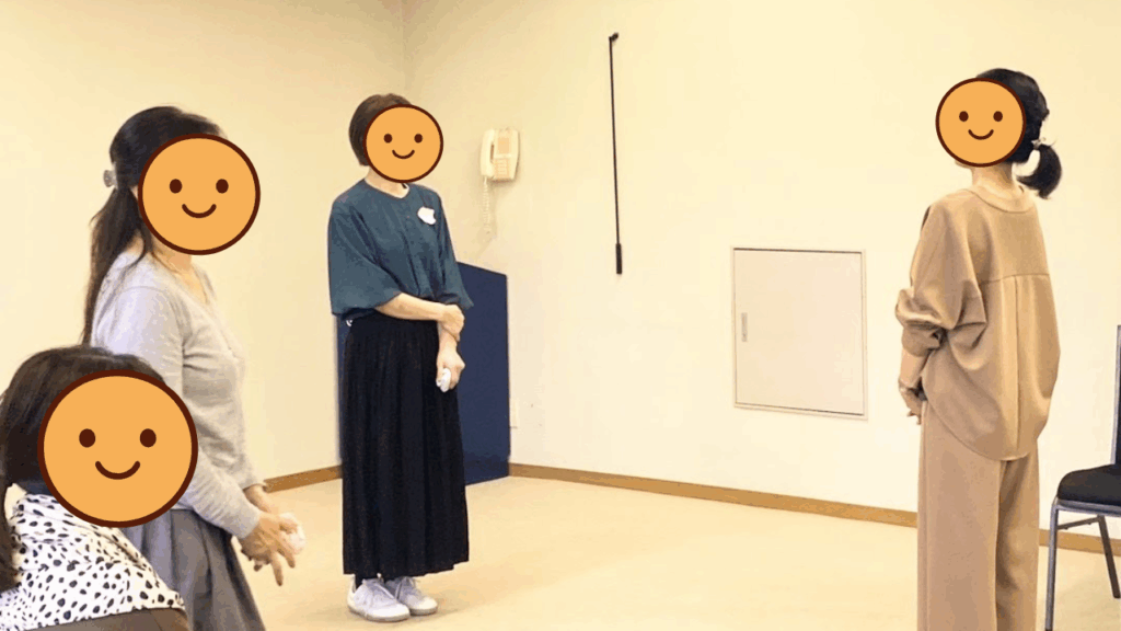 非日常空間の中で、日常生活で抑えていた「笑い」「愉しむ」「感情を感じる」ことを、参加者さんとの繋がりの中で取り戻すのが狙いです。