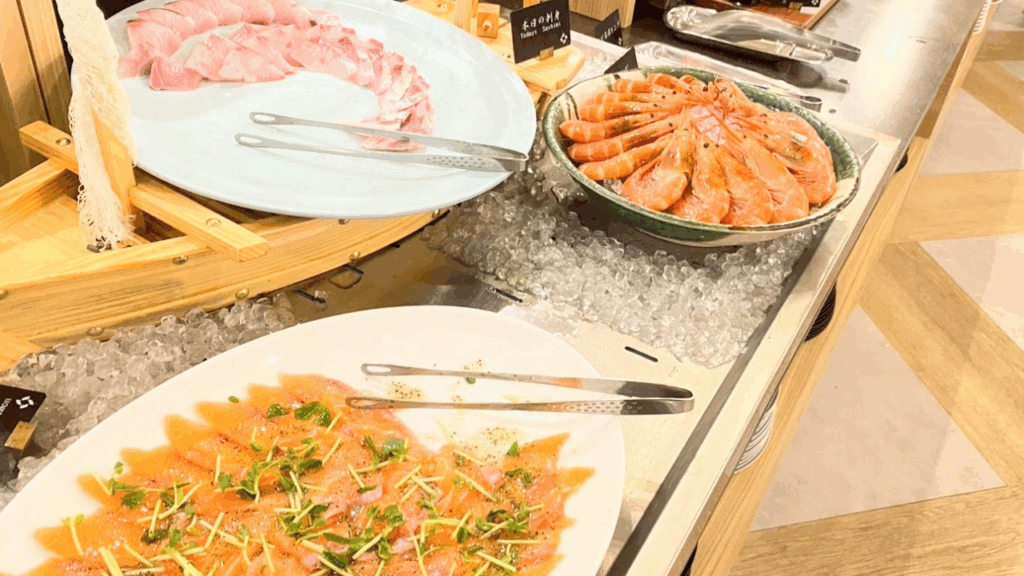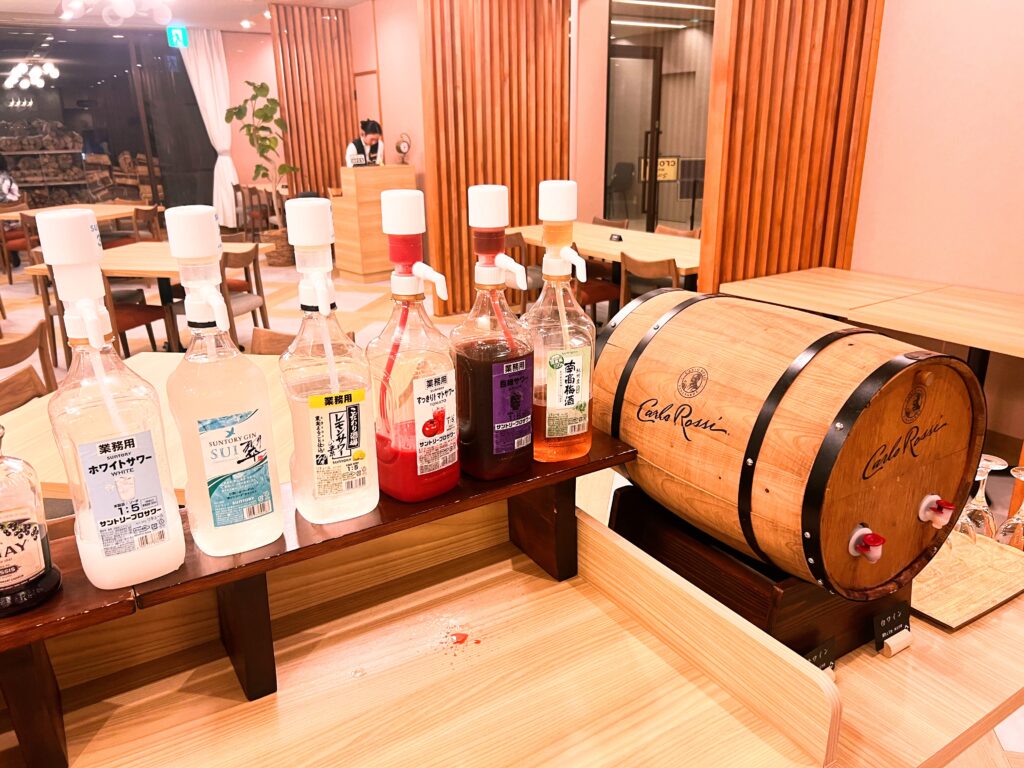 晩御飯はバイキング形式で、アルコールも全て取り放題。